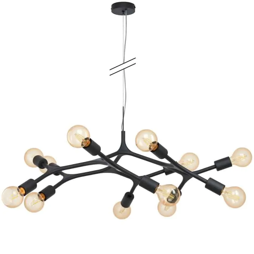 Consum total: 120 W Dulie: E27 Flux Luminos: 14400 lm Numar becuri: 12 Stil corp de iluminat: retro / industrial Temperatura de culoare: 2800 K Tip spatiu: hotel / restaurant, living, bucatarie Material: sticla, metal Bec inclus: nu