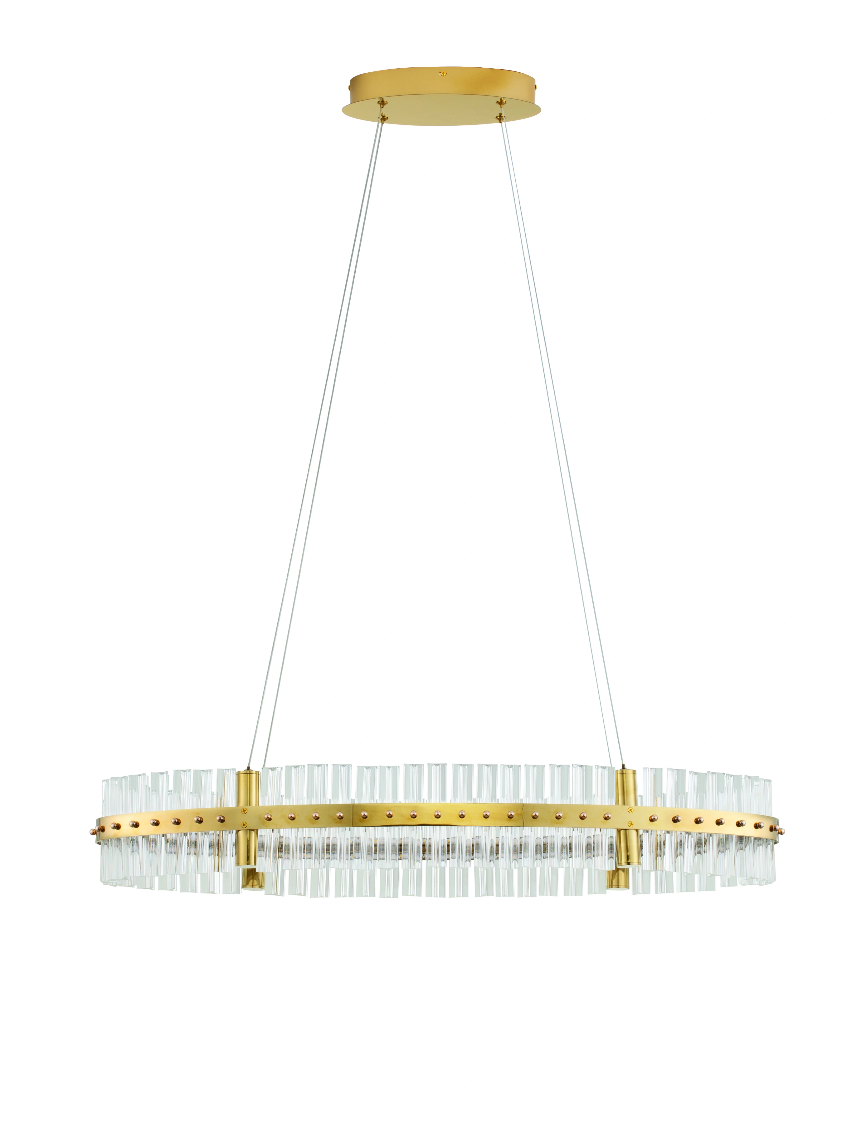 Pendul LED Nova Luce Kezo, 45W, 3500K, oval, auriu satinat-transparent, Triac