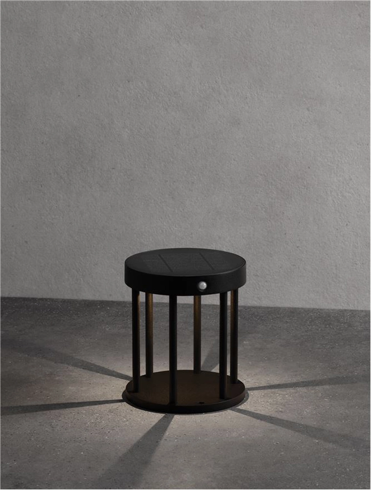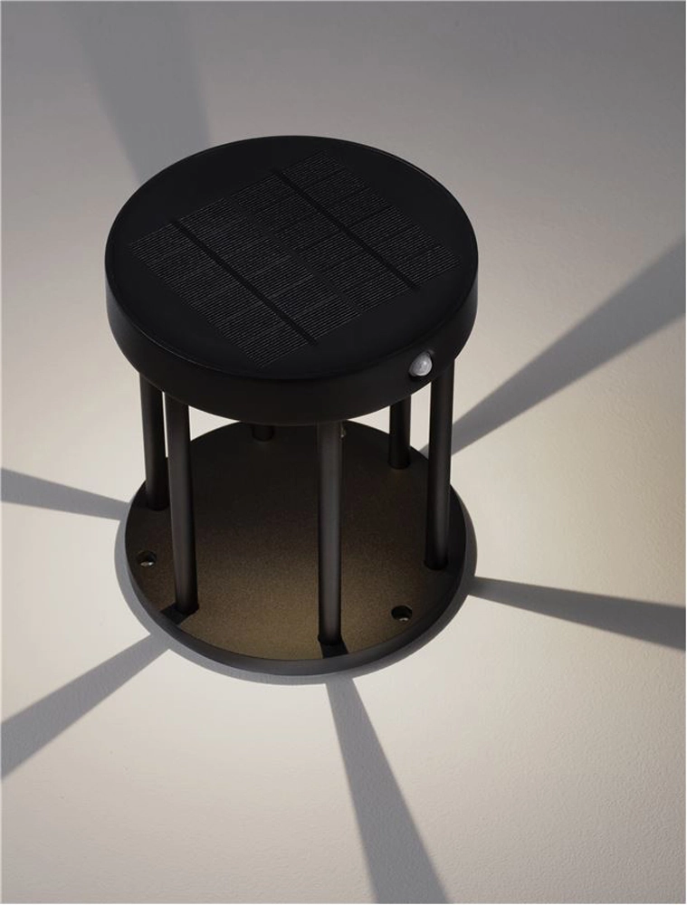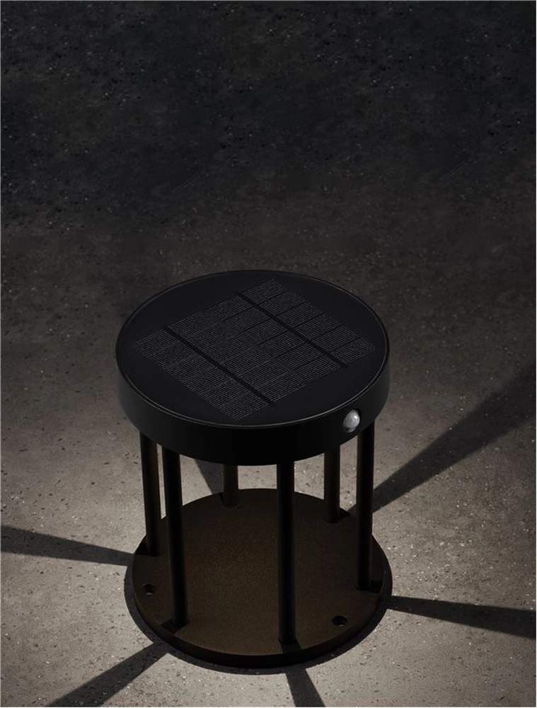 Stalp mic LED, cu senzor, Nova Luce Aigo, 2W, 3000K, 160x180mm, negru, solar, IP65
