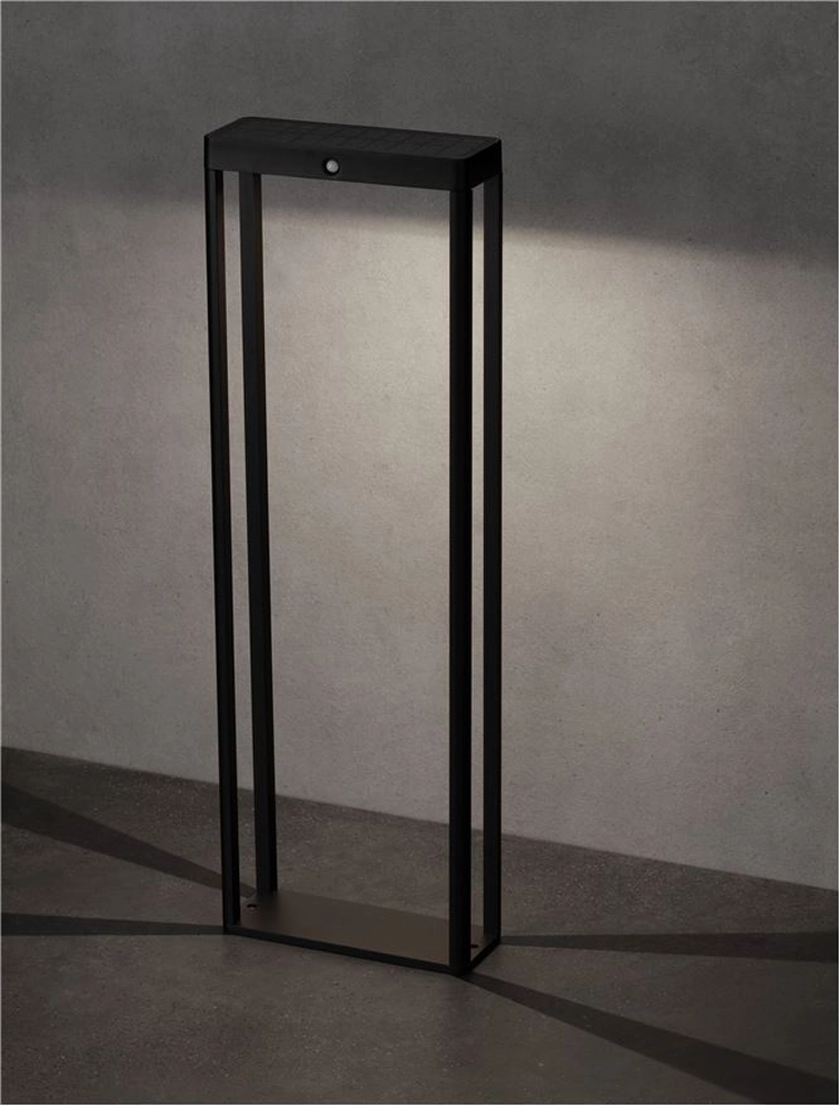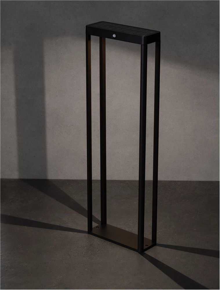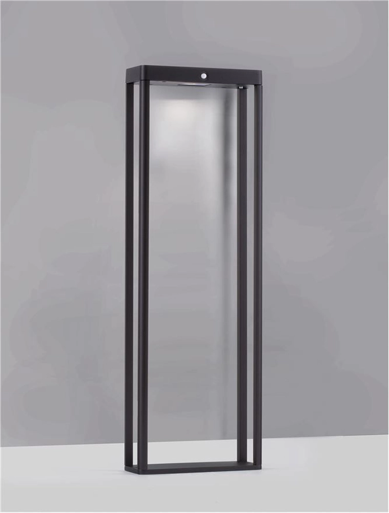 Stalp mic LED, cu senzor, Nova Luce Berni, 2W, 3000K, 230x86x700mm, negru, solar, IP65